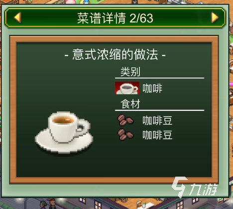 在该作里面是有着不少的食谱,有的食谱是可以通过任务来获取,有的则是需要玩家们进行开发才能获取到。下面就为带来一些食谱的介绍。首先第一个介绍的种类是咖啡。意式浓缩的开发是需要咖啡豆+咖啡豆。拿铁咖啡则是需要咖啡豆和牛奶。摩卡咖啡是咖啡豆+咖啡豆装饰物,还需要巧克力酱。