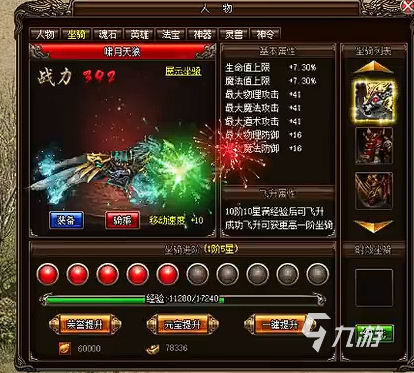 在完成了升星后,在往下就是飞升,这飞升只有坐骑达到了指定的星级才能开启,开启后会出现飞升的选项,直接点击选项就可以进行飞升了,完成后坐骑的全属性都会暴涨,暴涨后会给到角色高额的属性反馈,后续等级上限还会开放,还可以继续提升等级,属性还会再涨。
