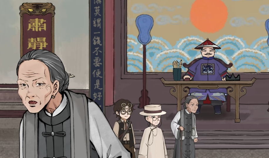 接着马捕头会到来,然后将我们给赶了出去。接下来继续和门口的兵丁进行对话,从他口中得知老童生曾经在次徘徊过。接着和老童生对话,帮其拿到他所需要的东西后可以得到一个可疑人员的信息。之后咱们继续往右边走,找到卖书的人去打探一下消息,然后再去铁匠铺询问一下凶器的情报。