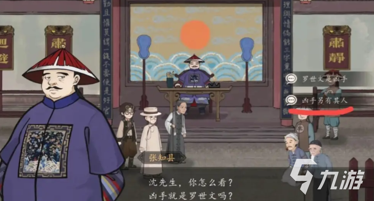再将尸体调查结果给提交,随后去质问杨二“小人把食盒放在了门边.......”这句话,提交“应是那跑腿的杨二”,接着会询问我们影响死亡时间的证据,这里提交炭盆,最后凶手会询问我们是罗世文,选择另有其人的选项并指认凶手是马捕头。