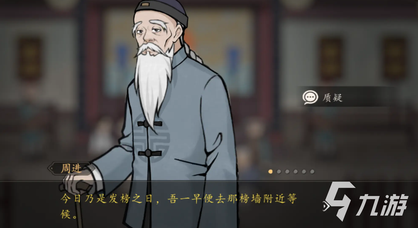 再接着前进遇到高老板向其询问问题,出示信件的拓印解决名片上的章印,向着左边走遇到点点与其对话,让阿福去井下查看,完成后直接到公堂,在这里质问周进“吾好奇望去,却瞥见一人.....”这句话。