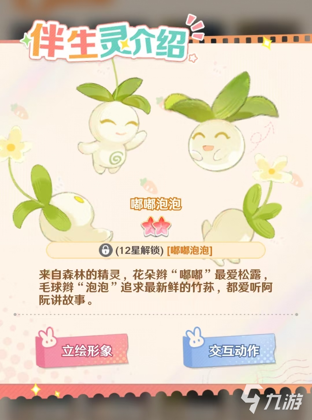 自身独特的被动是大糯米谷律师使招客贴的恢复时间减少20%,激活时就能生效。如果大家需要招客贴,那么阿阮绝对是不可缺少的一个。最后是自身的伴生灵嘟嘟泡泡,两个非常可爱的来自森林的精灵,一个是花朵辫,一个是毛球辫,这两个一左一右陪在身边非常可爱。