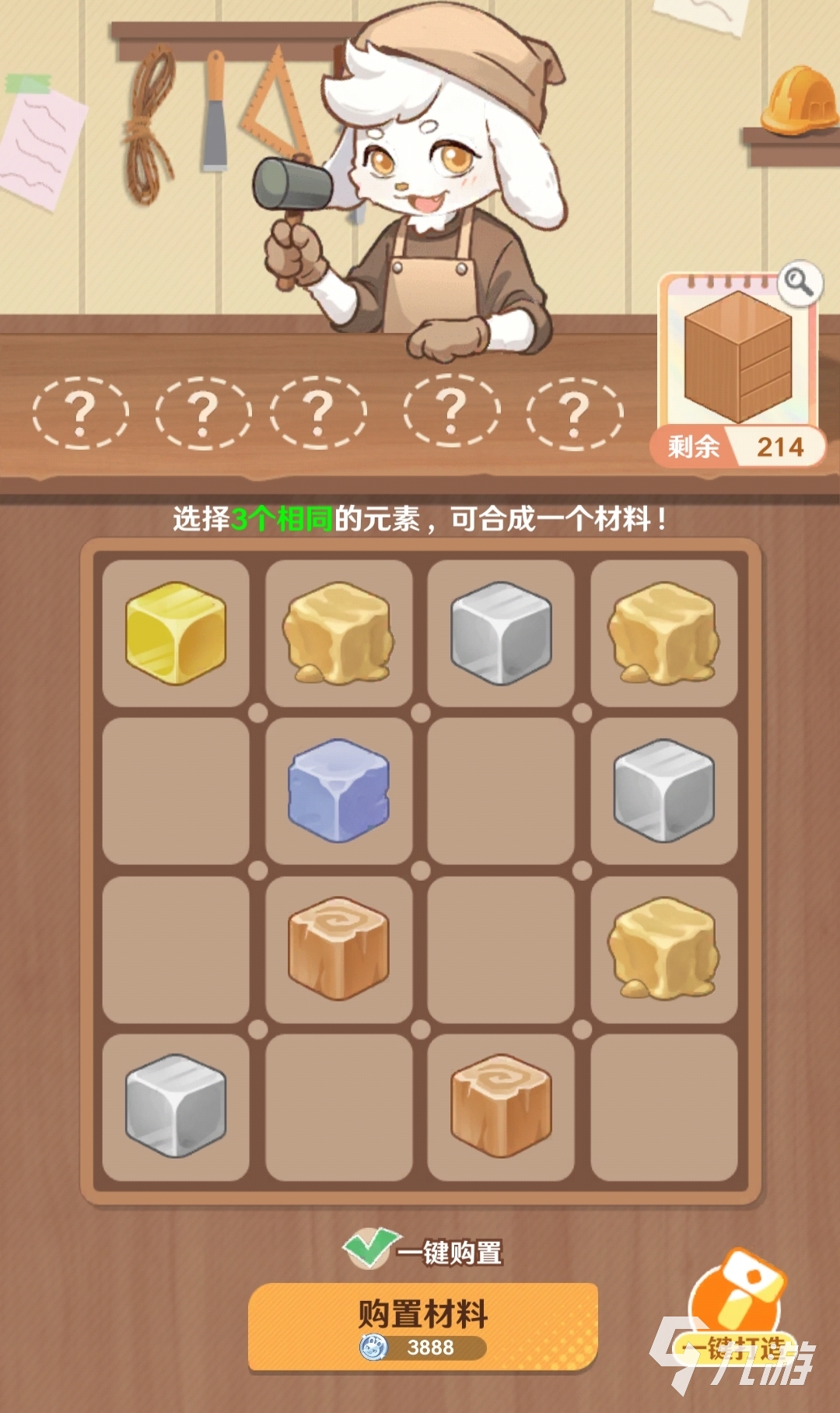 当玩家选中三个相同的打造元素后,可以将它们合成为一个对应的打造材料。这里的操作方式其实带有一点“消消乐”玩法的感觉——当三个相同的打造元素被选中后,它们会自动消除,并生成新的打造材料。材料集齐后,系统会随机打造出一件家具。这个“随机”是真正意义上的随机——即便使用相同材料,也可能得到完全不同的家具样式。