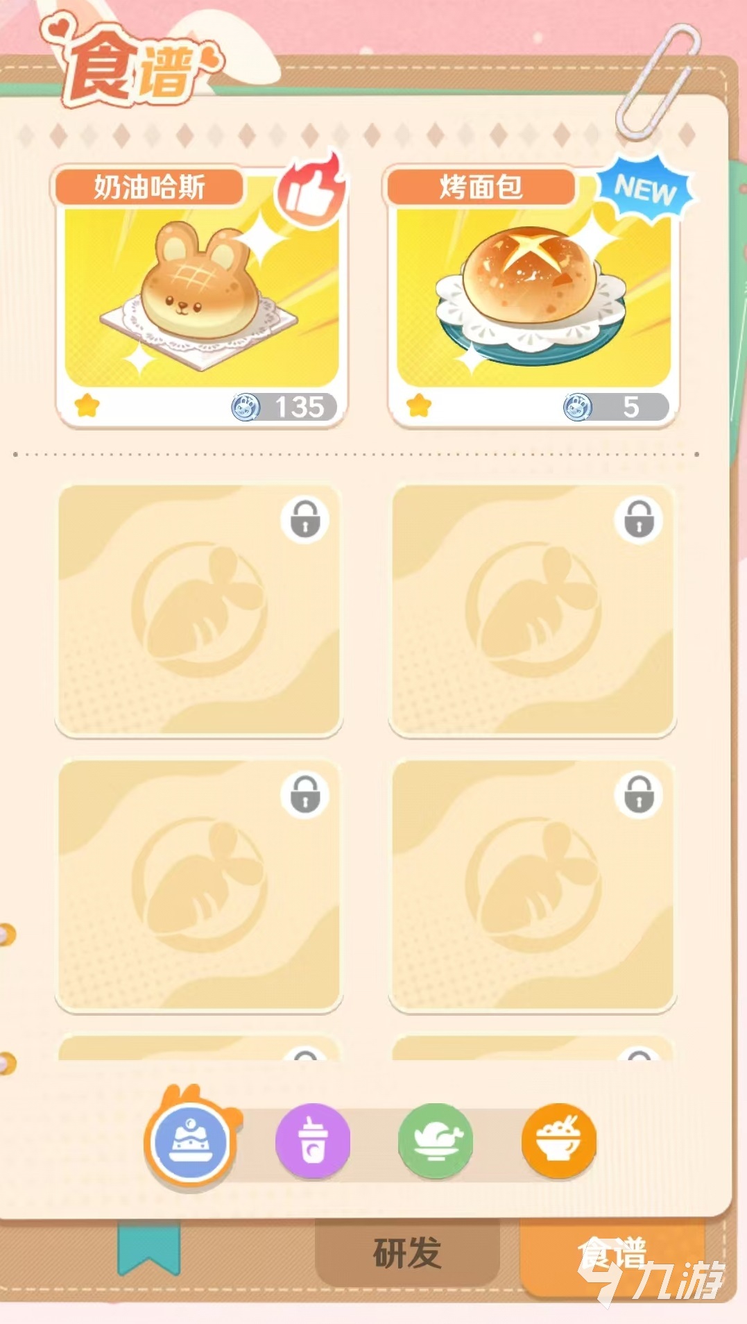 目前在游戏中可以通过研发解锁、完成任务和特殊事件、购买获取等一系列方式来获得,其中主要还是依靠研发。进入游戏后只需要点击前台上的按钮进入的菜谱界面,可以看到当前所有已经解锁的美食食谱。不同是否有着不同的升星消耗做法以及对应的售价和制作时间。大家在游戏中只要达到特定的条件就会收到食客的电话,然后按照要求将食材准备好,并且配置对应的器械,就能够制作出新菜谱了。