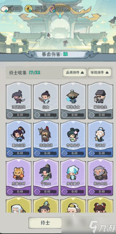 玩家还需要给修士携带装备,修身能够携带的装备总共有六件,玩家全部收集全之后,修士还能够促成修仙装备buff,提升基础攻击倍率。