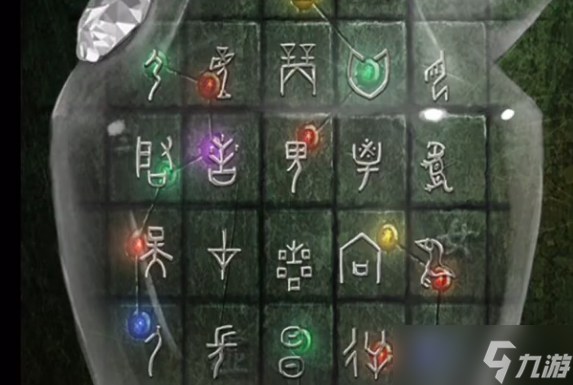 石龟的左上角有红色和蓝色的符号,证明在刚才所看到的不同颜色珠子对应的文字信息当中,只需要用到红色和蓝色珠子点亮的文字符号。依据之这一点,来点亮龟壳上面对应的符号,得到石头物件。来到葬物殿的门口,把石头物件摆在前面,开启小游戏,运用五行相克来完成,即可打开葬物殿的大门葬。进入到葬物殿内部,在木箱子里面拿到小孩的衣服,查看到桌面上书籍所记载的内容,得知桌面台子上所需要摆放物品位置的信息,依据此线索来摆放,得到葬铃以及一个新的线索。
