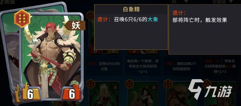 除了这三位外,其他需要留意的有白象精、玉面狐狸、石敢当和黑熊精,白象精能召唤出6只白象,建议将其放置到后排,让其生存到最后,这样哪怕场上其他人被击破,铺满场地的高攻击白象也是非常可怕的,玉面狐狸有着给妖族加攻击力的效果,石敢当前期能施加上不屈,提高队友的生存能力,使得他们战斗到最后,给与充分的发展空间,黑熊精能在施加不屈和护卫之后,至少可以抵达4次攻击,最大程度保证我方石矶的生存。