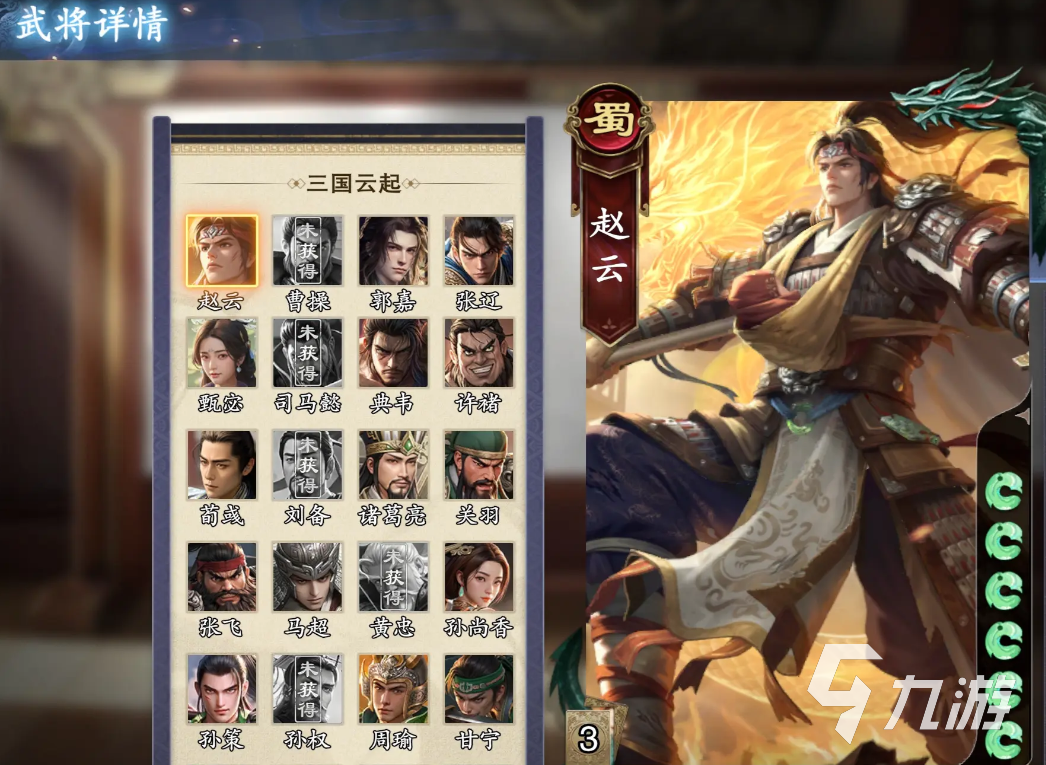 赵云在徐州和荆州都可以作为城主使用,他的“枪出如龙”会在出杀时,摸1张牌并且手上的闪可以当做杀打出,他的“一身是胆”能在闪避时,立刻打出1张杀,并且杀也可以当做闪来打出,他的“七进七出”能在每累计打出7张杀或者闪后,手牌的上限加1,每个出牌阶段的出杀次数加1。