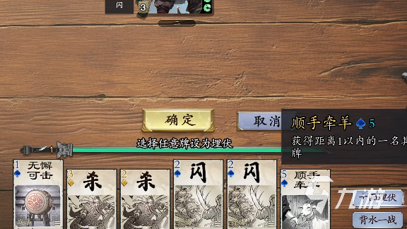 游戏中的51关这关卡大家将要面对的是项羽这位武将,在面对该武将后大家需要做的是击败他,而想要击败这武将那就需要等到他出牌,看需要先去使用必定会抽到的顺手牵羊然后对其进行使用,之后骗他出牌。