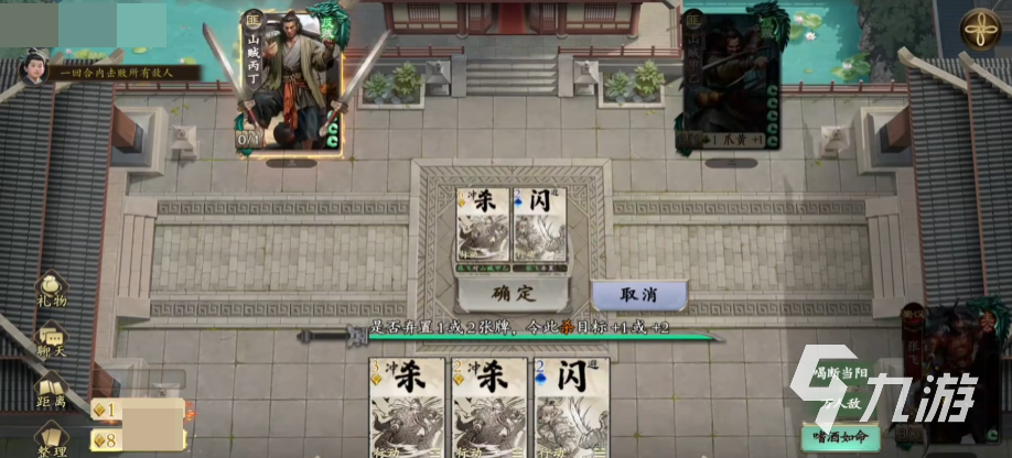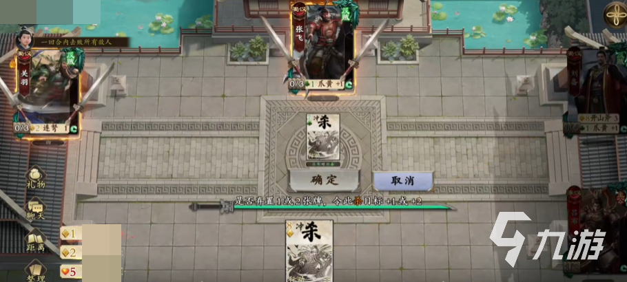 第九关为小畜,需要对关羽使用两次“顺手牵羊”的效果,然后再对刘备使用该效果,即可直接获得方天画戟,使用杀招对付刘备,然后弃置2张卡牌,即可触发方天画戟的特效,将特效对付到关羽和张飞两个人身上就能达成目标。