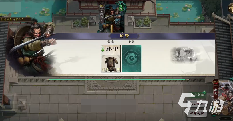 第十关履,先通过过河拆桥获得山贼的一匹马,然后使用“顺手牵羊”技能获得山贼的火杀特效,对山贼直接火杀后,就可以消灭山贼,然后得到这一关的胜利。