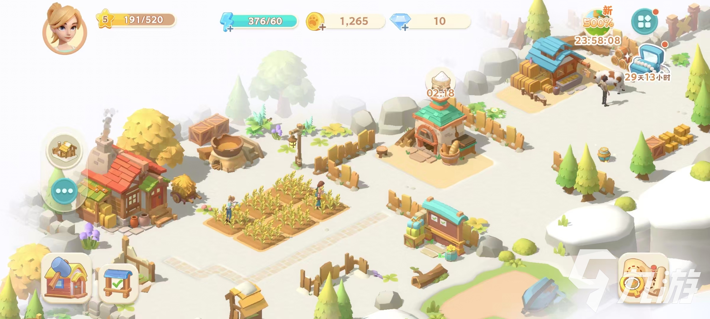 该游戏在玩法方面有着非常多的优势,首先是玩法融合的非常巧妙,将种田和探险等玩法相结合起来,节奏安排合理。玩家可以在上线之后直接去收菜,然后进入岛屿中探险,剩下的时间可扩建自己的营地,或者是玩一些钓鱼小游戏等,整体游戏节奏舒缓,很适合上班族在通勤或者是午休等碎片时间去游玩。这里没有各种氪金和氪肝的设定,不会强制去完成高难度任务,所以不会产生各种压力。