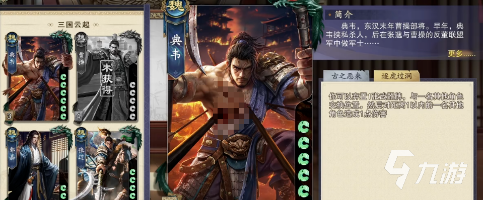 典韦隶属于魏国,如果大家选择魏国主公,可以触发一些阵营技能。该角色的技能比较直观,简单粗暴,很适合新人玩家去用,只要了解其技能详情就能快速掌握操作方法。