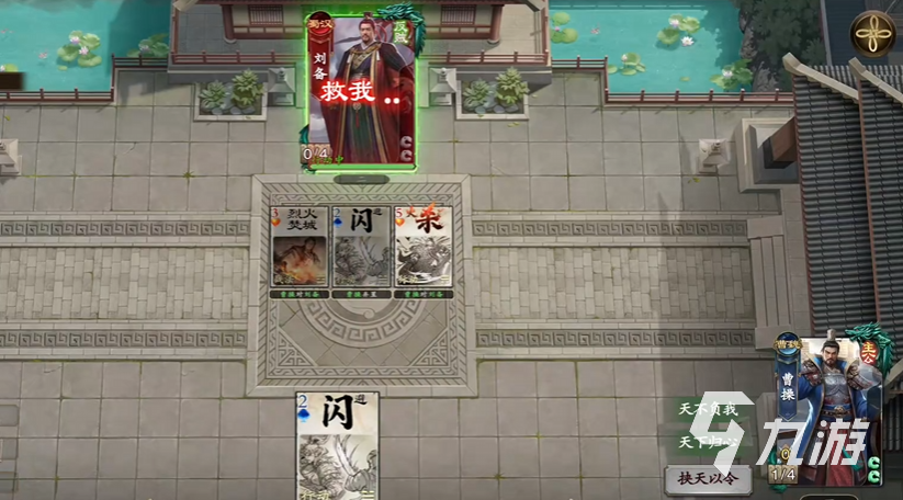 第47关:先对刘备出烈火,丢掉闪,完成之后结算刘会剩一血,用铁索重置并获得一张杀牌,然后对刘备打出杀牌就可以获胜了。