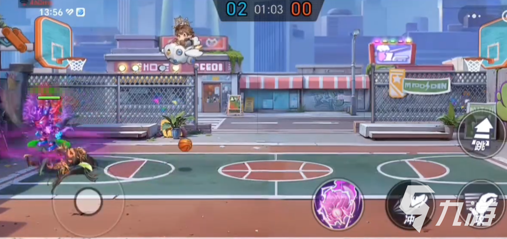 当对方被击倒时,大家就要快速按下冲刺按钮,争取更快的灌篮,并拿下大量的分数。当对方发起进攻时,大家就要看准时机释放技能,最好等对方跳跃时,这时就可以将对方打下来,避免他拿下分数。然后就可以找准球的落点,先发夺人后尽量靠近篮筐即可获胜!
