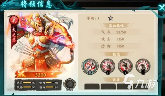 太史慈是无双品质的红将,品质非常高,同时也是枪兵系的输出。从数值面板不难看出,他的武力、统帅和魅力属性都是比较优秀的,攻击力和防御力很高,且均衡发展,实力强横。怒气技会对所有敌方武将打出技能伤害,如果敌方武将被挂“灼烧”buff,还能对其造成额外伤害;如果解锁了觉醒技,怒气技可增加暴击率,如果暴击率超过100%,溢出的暴击率将会转化成暴击伤害。场上如果有敌人获得的“灼烧”效果,他的被动技就会触发,”烈日灼心”会对周围一圈的对手均造成技能损伤。高额伤害主要依靠暴击率打出,搭配携带灼烧的队友,会优先造成大量群体伤害,是个相当不错的武将。
