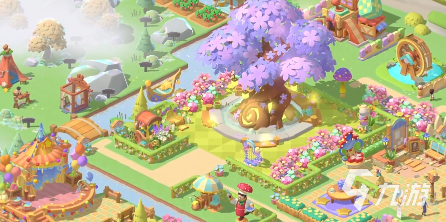 其次就是广场和集市中心区域,这里将繁盛树作为核心,然后向外围进一步扩展,这样就能打造社交枢纽,广场周边可以设置摊位,还有贸易的区域,这样玩家之间交易置换资源也更加方便,树荫地下可以设置休闲的建筑。