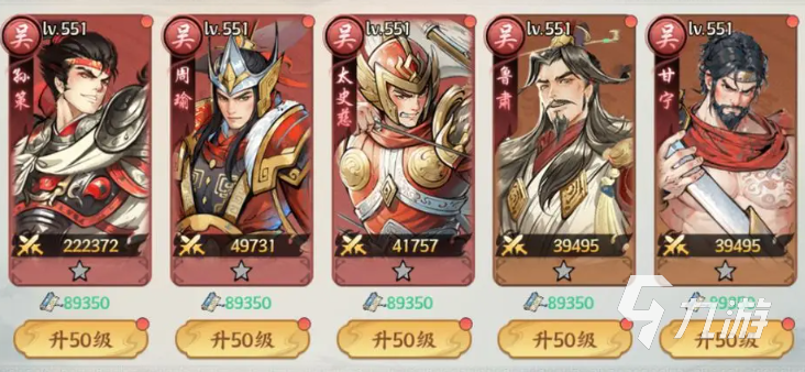 不出意外是以“灼烧”为特点的阵容,主打持续伤害与连锁输出。推荐阵容太史慈、孙策、周瑜、鲁肃、甘宁。周瑜与鲁肃是主要挂火的,能在短时间内让敌方陷入持续掉血状态;甘宁负责进一步叠加灼烧层数并维持输出;太史慈与孙策则在灼烧状态下打出额外的高爆发伤害。吴国队最大优势在于持续输出与伤害覆盖面广,尤其是在群战或国战玩法中表现亮眼。周瑜技能的五段伤害能让敌方持续损失气血上限,对高血量目标杀伤力强。缺点是吴国队控制手段不足,需要通过装备、兵种克制等方式来弥补生存短板。