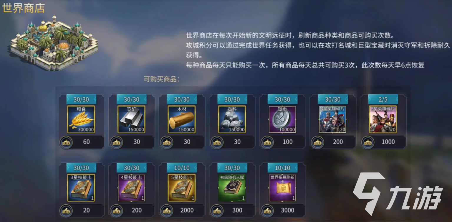 英雄之城3世界商店购买攻略就分享到这了,需要特别注意的是,商店中货品是有着一定购买限制,并且每天都会刷新,所以大家一定要盯好商店,一定有刷新出有用的就及时进行购买。