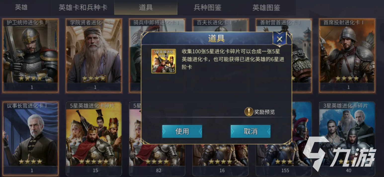 首先带大家认识一些重要货品的作用,像4星英雄进化卡碎片,就是在英雄进阶到满级时,需要相应的进化卡,来实现星级的跨越,像是3星可以变成4星,而4星可变为5星等,碎片集结100个,就能随机去合成一个4星英雄的进化卡,使得该英雄能升级进化。