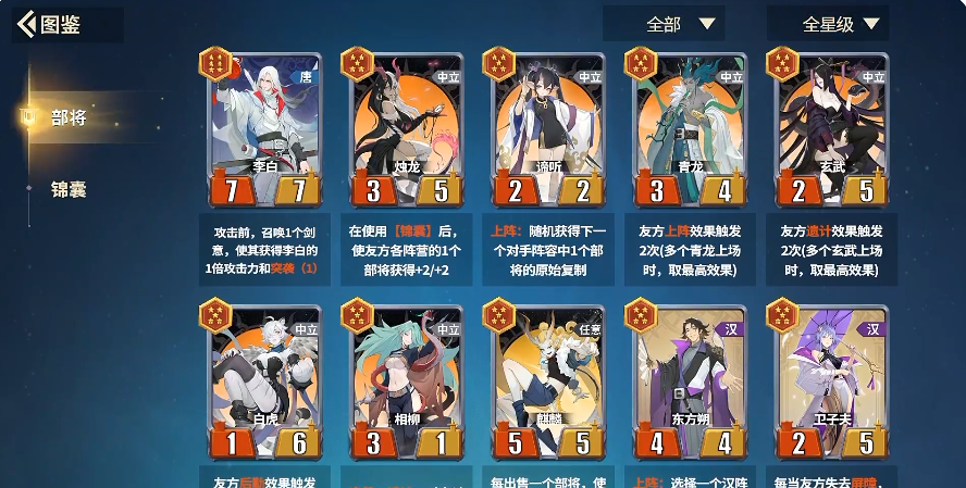 核心之处就在于迅速合成金卡,合成金色武将后,立刻就会合成更高级招募卡,如果一开始遇到了相同的卡,即便是三星白面也可以全部锁定在商店里面。四本必然是能直接合成金卡,这样就能更早的找到五星核心卡,决赛圈还可以运用特殊武将,尽可能就能将战局得到改变。