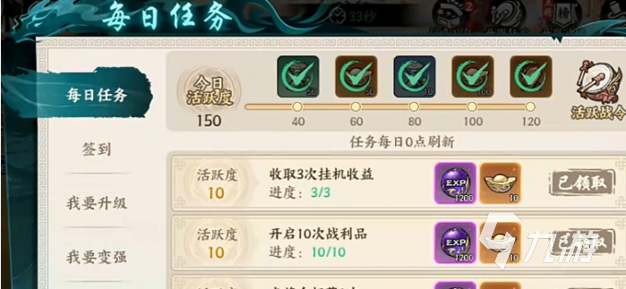当然每日任务也很重要,虽然这个方式累积的资源不是特别的多,但是还包括别的收益,比如元宝之类的,可以优先选择能获得经验的任务,尤其是在卡着等级要突破的时候,有该方法的辅助,开荒期升级可以更加迅速。