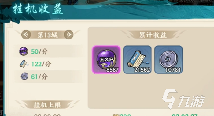 如果主线推进到一定程度,感觉受到了阻碍,挂机收益就是另一个重点渠道,一般挂机收益是能累积8小时的,这是没开月卡权限的情况下,也是开荒期之后主要的经验获取来源,而且每天还能领取一定次数的快速收益,无需等待几小时就能获得资源,免费次数后也能通过元宝购买次数。