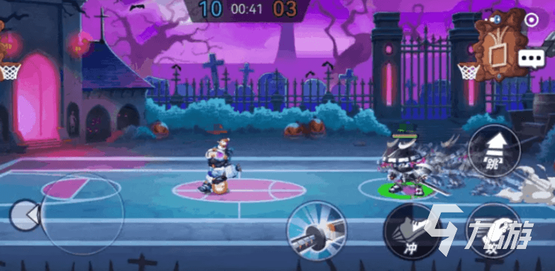 破吉有着强大的战场掌控力,他的主动技会拿着电锯将路径上的敌人全部挑飞,受到攻击的对手将陷入暂时的流血状态持续扣除血量,他的被动会在体力超过敌人时灌篮进入强化状态,在该状态下不会被技能或者盖帽给命中,若敌人盖帽会被扣到地面。