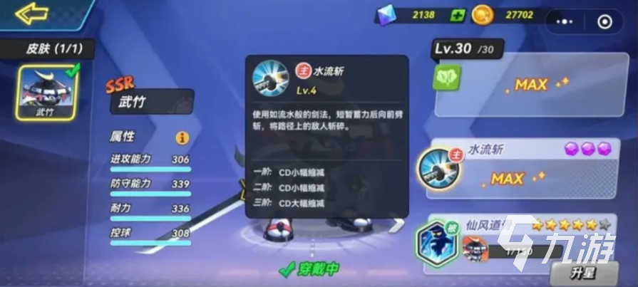 他的主技能会运用如同流水一般高超的剑法,将路径上碰触到的对手斩倒在地,此时对手的手中若持球,球也会一样掉落,大家可以用这个来阻止对手得分,他的普攻有3段,第3段时会小范围进行突击给予对手意想不到的一击。