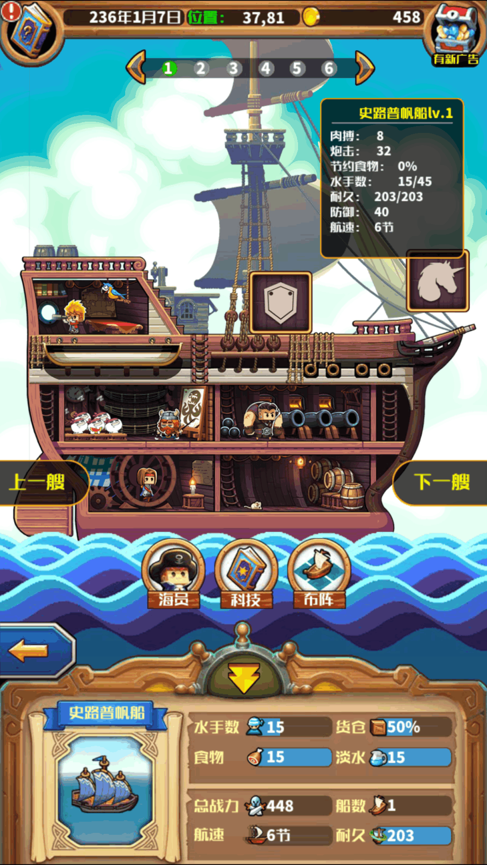 玩家在探索和旅行中会遭遇各种各样的船员,玩家可以招募他们,组建自己的超级舰队。