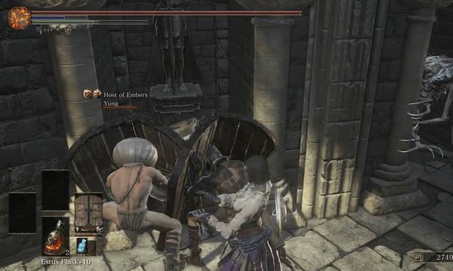 在《黑暗之魂3》新DLC“环印城”里,新出现了一种堪称无解的装备:巨门盾(Giant Door Shield)。它可以双持,看上去就像两块门板,合在一起好比一扇城门。