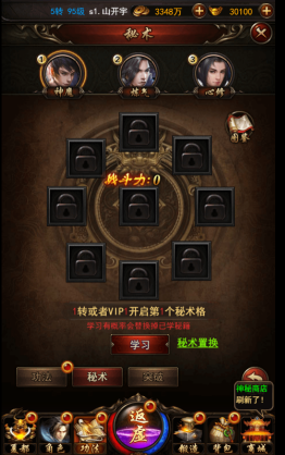 简介:通过境界的提升或者vip等级提升可以解锁秘术装备位,装备秘术后可以增加大量战斗力。