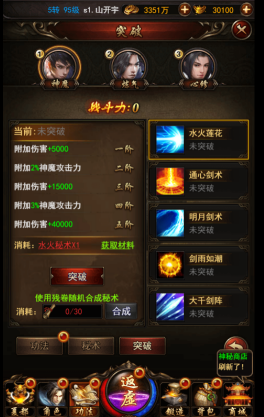 简介:游戏中玩家可以通过活动获得功法秘籍,更高一级的提升被动属性,需消耗功法秘籍。
