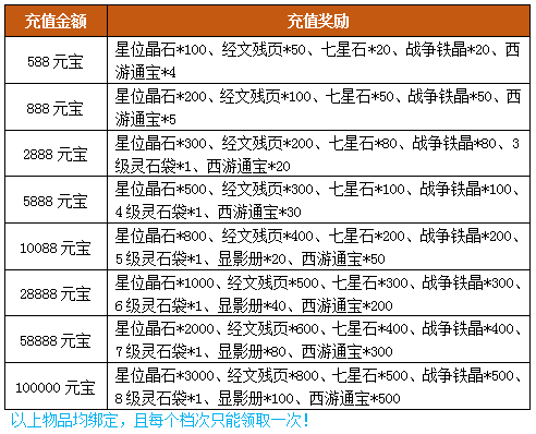 注:以上奖励均为绑定。