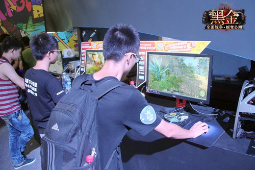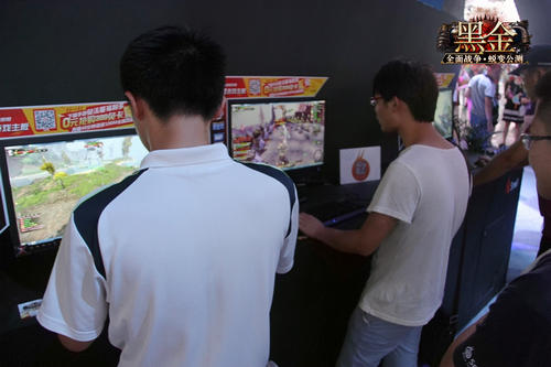 官方本次对于试玩活动做了精心的安排,也更人性化。在体验区入口有专门的SG高举路标以示引导,玩家们热情也是空前高涨,有些玩家匆匆赶来,连背包都来不及卸下,就激情畅玩起来,足见《黑金》顶级魔幻之魅力。