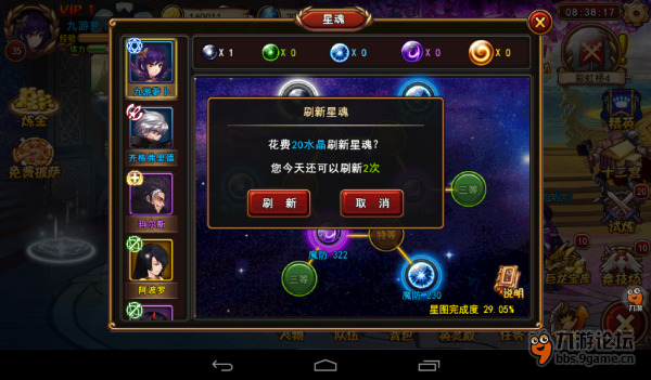 2、花100水晶刷新星魂品质刷到满意为止。