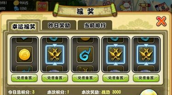 参与摇奖很有意思呢,不仅能得到战功还能获得游戏中一些必备的东西,比如钻石,金币,查克拉等等。