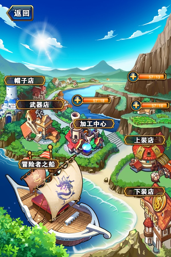 冒险者之船:提供各建筑升级的功能,升级建筑需要注入魂石(通关挑战关卡掉落)。而各个建筑的等级则不能超过冒险者之船的等级。