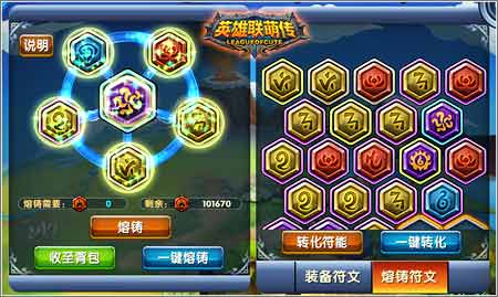 符文系统的强势推出让《英雄联萌传》各路勇士再燃斗志,防御、破甲、物理、魔法、暴击、命中…但凡是你期望得到的,各色符文总有能够满足你的属性。而不同层级的符文散发不一样的光环以区分属性数值的高低,让你的英雄团队实力一目了然!