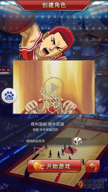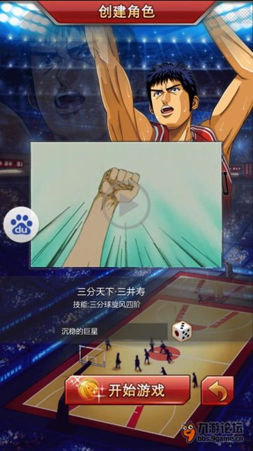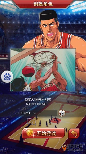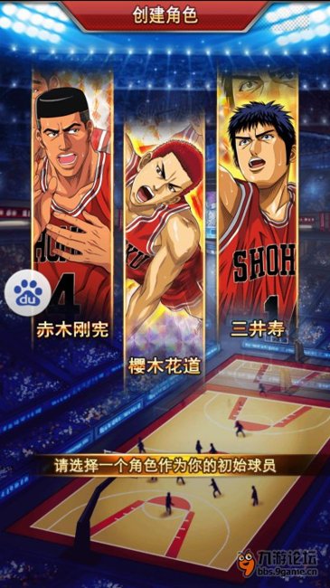 当我们进入游戏的是,就会看到以上画面,让我们选择一个角色作为初始球员。就算不是《灌篮高手》动漫迷的你,也能轻松作出选择。因为只要我们点击每个球员,就会出现每个球员属性介绍的画面,所以大家需要怎么样的进攻和防守能力,也能轻松辨别,快速选择。
