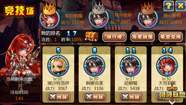 最后,原版竞技场由于三角排列问题,看上去会有点眼花的感觉,比较乱,各项功能入口位置比较奇怪。所以这项最重要的PVP功能修改为传统但是正规的横版排列,上方为前三名的玩家,进入竞技场界面,玩家可以一目了然的看到所有功能与信息。