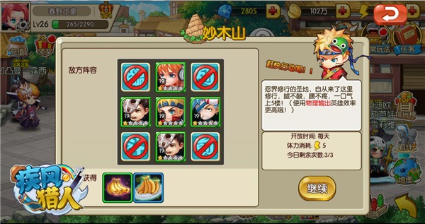 妙木山是忍界修行的圣地,汇聚了不少忍术高手,击败他们就能获得经验果实。不过这里的忍术高手们魔抗都比较高,所以使用推荐大家使用物理输出的英雄来增加效率。