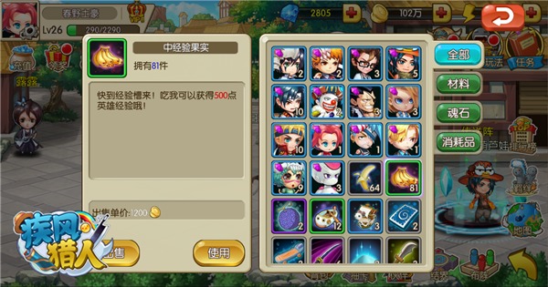 得到经验果实之后,打开背包对角色使用经验果实,就可以迅速提升角色等级。简直是新卡、小号的福音有木有!