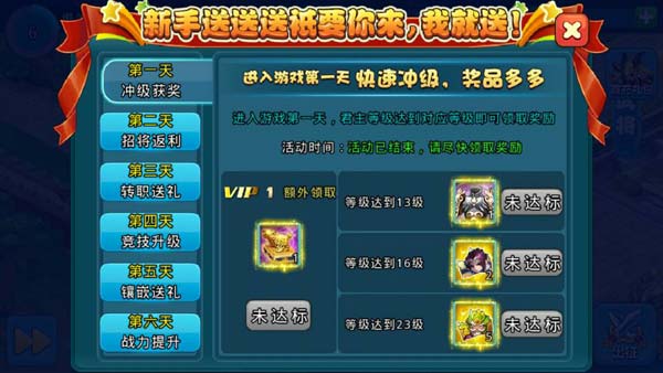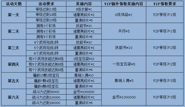 新玩家进入游戏后,在进入游戏的前6天内,可以参与该活动前6天内