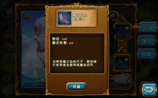 (装备)右侧为英雄装备槽,可以通过点击空槽来装备物品,从而获得属性加成。