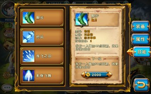 点击技能,右侧会浮现技能详细说 明,包括技能类型、属性、影响范围 以及cd(冷却时间);右下角为升级技能所需金币。