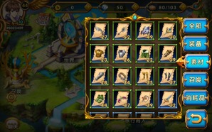 5-3-2 背包界面:包括游戏中可以获得的装备、素材、召唤碎片和消耗品。系统会按照稀有度自行排列。