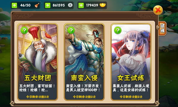 女王试炼副本位于《三国之乱舞》试炼玩法中,与特色玩法五大财团和南蛮入侵不同的是,女王试炼是个更加具有特点的玩法,因为女王试炼副本是只有女将才能参加的玩法!