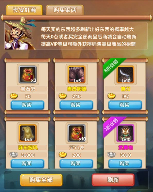 钥匙类的物品一定要买哦,在自动挂机的时候,会开启不同的宝箱,这里的物品还是扛扛的,1折,3折,5折出现这类的就一定不要放过,通通放入口袋。