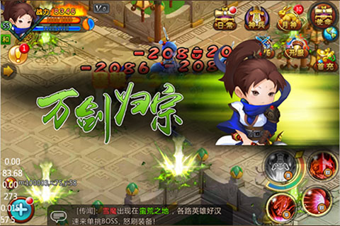 虽然《月光传奇》是一款Q萌可爱的萌版系列手游,但其战斗操作与技能特效,绝对是一场华丽的竞技盛宴!游戏中,玩家可以自由选择“剑仙”、“雷神”与“魔炮”任一职业,每种职业都有着自身的特性: